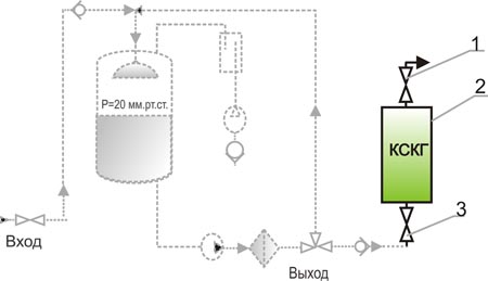 | 1.Входной вентиль | 3.Выходной вентиль |